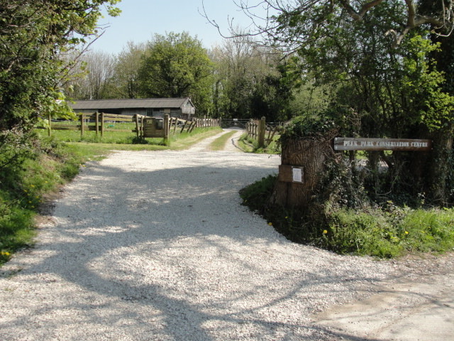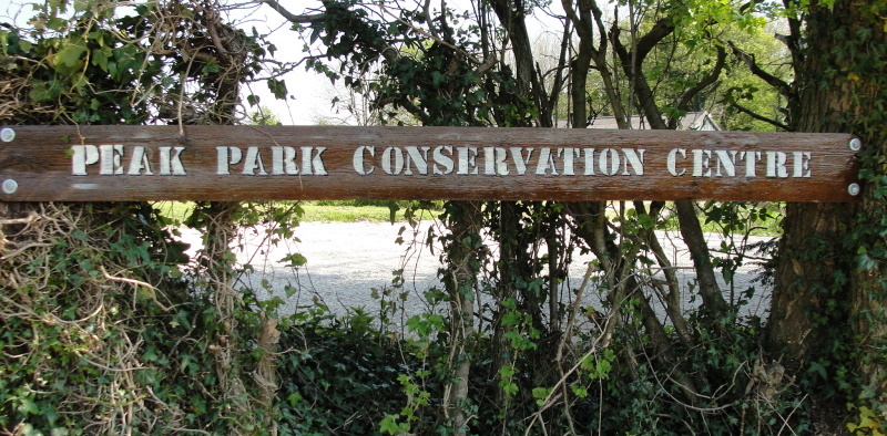 the last house on your right, the next entrance on your left is clearly signed as the Peak Park Conservation Centre (see picture below).